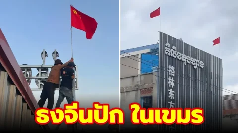 มุกใหม่แก๊งสแกม แห่ปักธงชาติจีนเหนือตึกในปอยเปต หวังใช้เป็น "ยันต์กัน F-16" ทัพไทย