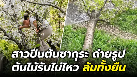 หาทำ! สาวจีน ปีนต้นซากุระเพื่อถ่ายรูป ทำต้นไม้ล้มทั้งยืน เพราะรับน้ำหนักไม่ได้ 😆